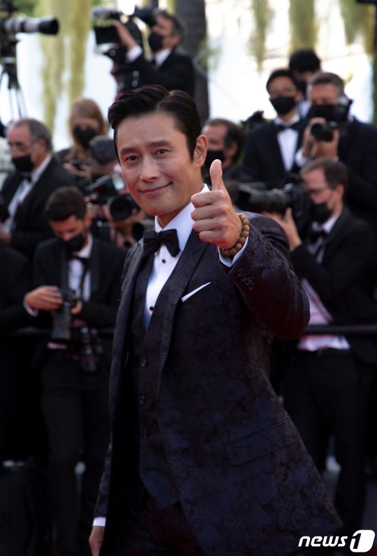 カンヌ国際映画祭閉幕日17日午後(現地時間)、映画祭が開かれている南フランスのリゾート地カンヌパレデフェスティバルで閉幕式授賞者に指定された俳優イ・ビョンホンがレッドカーペットに上がっている。 2021.07.18/ニュース1。 ©News1イジュンソンフリーランスの記者