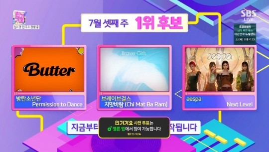 7月18日放送されたSBS「人気歌謡「1位候補に防弾少年団、ブレイブガールズ、エスパが上がった。