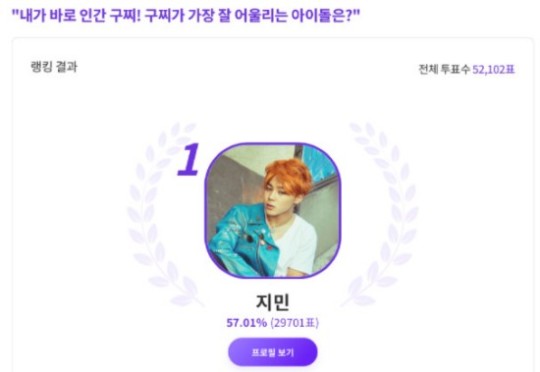 今年7月11日から17日までの7日間」エキサイティングディッシュ」で行われた「私はすぐに人間グッチ!グッチが最もよく似合うアイドルは?」というテーマで投票を行った結果、防弾少年団のジミンが1位だった。