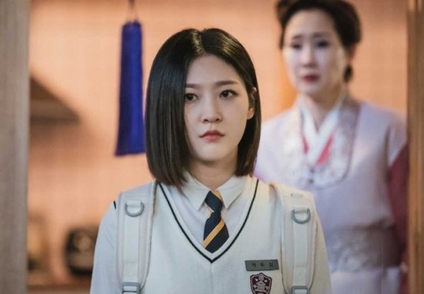 新しくリリースされた静止画では、いつものきちんとした学校の制服を着たガドゥシム(キムセロン)が気になる表情を見せています。ペ・ヘソンが演じる母親のヒョシムが背中に同じ表情を浮かべている。彼女の容姿を見ただけでは、彼女がシャーマンだとは誰にもわからないでしょう。