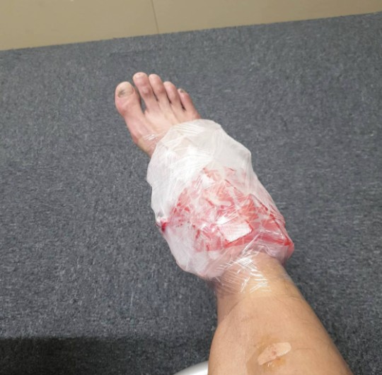 写真はオソンウクが負傷した足首を氷の湿布している様子が写っていた。オソンウクは「怪我をしたのは幸いなことにひどくない」という文を付け加えファンを安心させた。