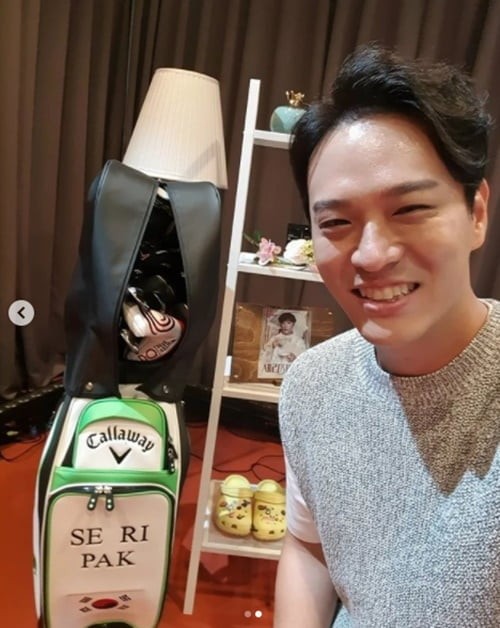 公開された写真の中にキム・ヨンジュンとパク・セリが明るい笑顔で認証写真を撮影している。別の写真の中には「朴セリ」と書かれたゴルフバッグ含まれていて目を引く。