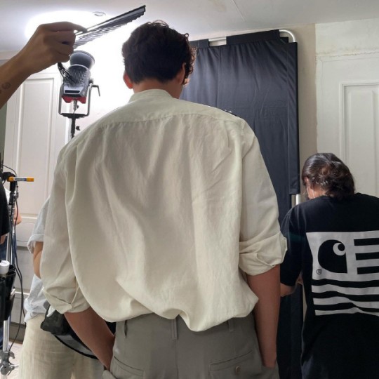 写真には撮影現場で監視するキム・ウビンの後ろ姿が入れられた。肩の幅が57cmと知られているキム・ウビンはよりもはるかに広く見える広大な肩を誇り感心をかもし出す。