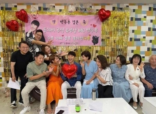 最近、「トンチミ」のMCである放送パク・スホンがガールフレンドと婚姻届しニュースを伝え、出演者たちの多くがした空間に集まってマスクを脱いだまま撮影したお祝い認証ショットが公開された。