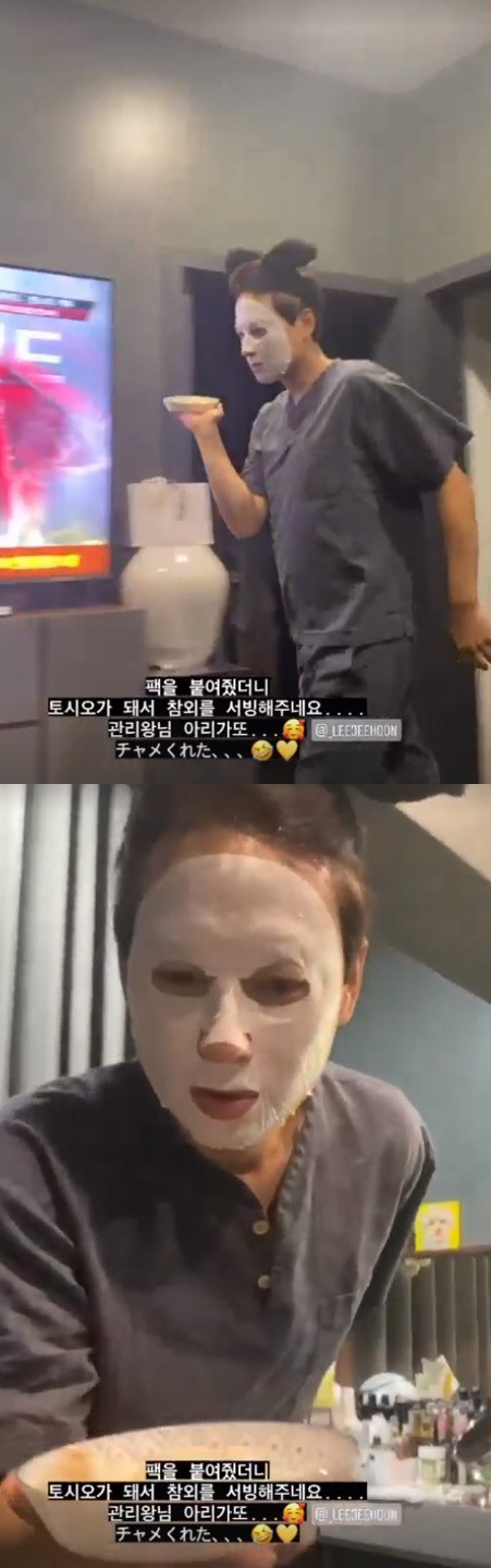 31日彩音は、自分のインスタグラムに「パックを付けてくれたら敏夫なってメロンを用意してくれますね。管理王様アリがまた」という文と短いビデオを公開した。