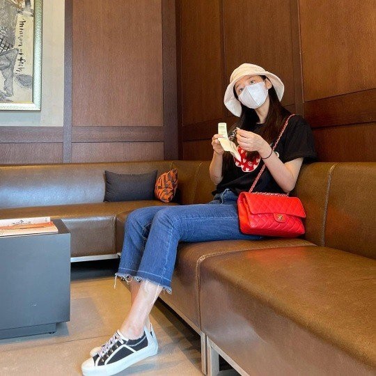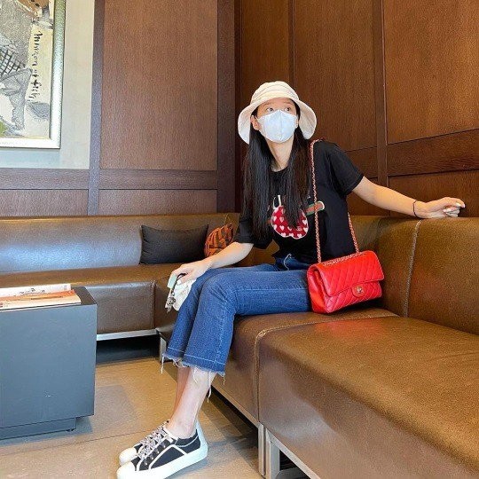公開された写真の中のチョはブラックTシャツに7部のジーンズをマッチしてキュートなルックを演出した。ここでホワイトバケットハットを着用してスタイリッシュな感覚を加えた、赤デザイナーハンドバッグにスタイルポイントを与えた。