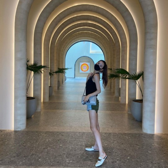 写真の中のイ・ダヘはノースリーブのTシャツにホットパンツを着スマートなスタイルを自慢した。イ・ダヘはゴルフのために真っ黒弾足を強調するかのように、長い足をずっと伸ばすポーズを取って目を引いた。
