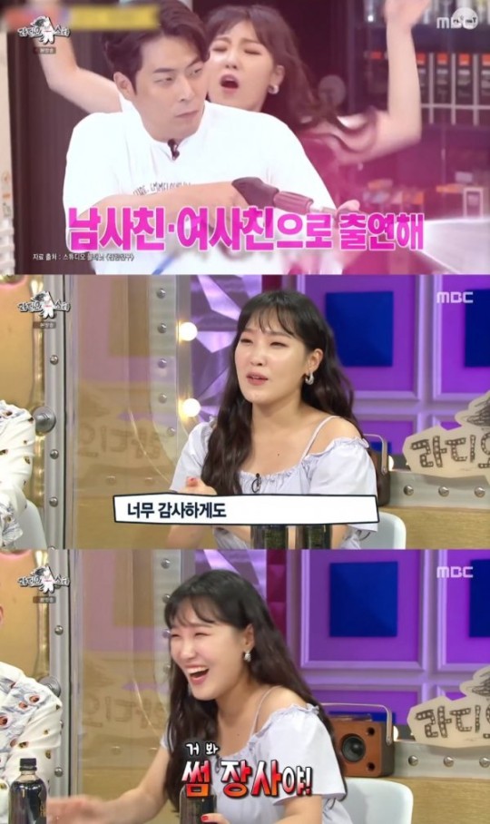 MCはイ・ウンジにギムヘジュンとカップルに出てくる映像が話題と「実際のサムのかサム商売なのか教えてくれ」と質問した。
