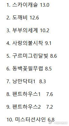 最も人気があり、最も評価の高いKドラマが互いに一致しているのを見ると、非常に多くの視聴者が参加しているために放映されたときに非常に注目を集めていたものについて、さらに多くのコンテキストを得ることができます。過去5年間人気のKドラマであり、最高峰は、 jTBC を単独で競争相手の舞台に置いたスカイキャッスルの大御所のままです。 2位は tvN のファンタジーロマンスヒットゴブリンで、2つのドラマは実際にはそれほど離れていません。その後、別のjTBCドラマ夫婦の世界が3番目に続き、愛の不時着が続き、上位5つを締めくくるのは雲が描いた月明かり。これらのドラマは、放映されたときに大ヒット作として一律に受け入れられたため、完全に保証されています。リストの後半は、椿の花咲くが6位、次に浪漫ドクター、キム先生の最初のシーズンで始まり、8番目と9番目にリストに登場します。場所はペントハウスシーズン1と2で、10番目の場所はミスターです。サンシャイン。