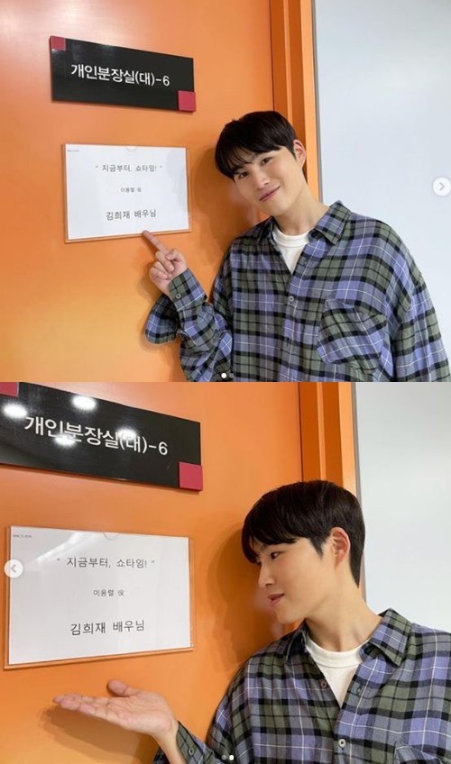 写真の中にMBCドラマ「これから、ショータイム」控室の前で写真を撮るキム・ヒジェの姿が盛られている。