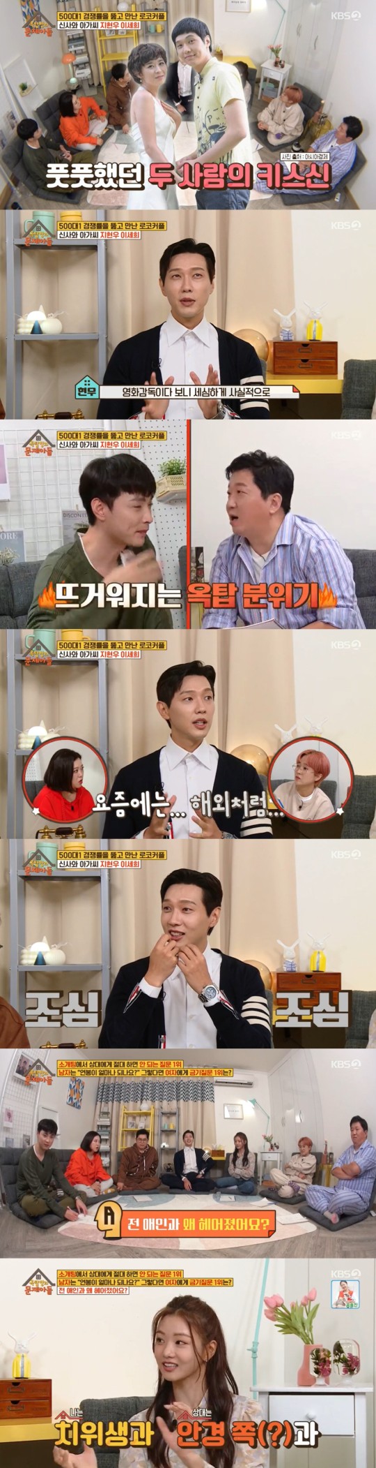 次の問題は「合コンで女にはならないタブー質問1位は?」であり、正解はイセフイが答えた”元恋人となぜ別れた?」だった。チ・ヒョヌは「高校生の時に団体合コンをした経験がある」と、イセフイも大学生の時グァチンをしたと打ち明けた。