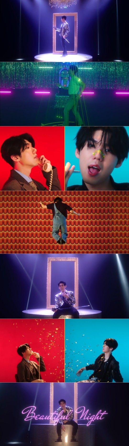 「ビューティフルナイト」は、愛する女性を自分のパーティーに招待する「パーティー招待」とも同じだ。 「君と一緒にこの夜を描いてみよう」 「主人公は君と出てきた世界が私たちのための光を照らしてあげて祭りを開いてくれるんだ」 。