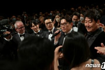 (カーン=ニュース1)イジュンソンフリーランスの記者=16日午後(現地時間)、カンヌ国際映画祭が開かれている南フランスのリゾート地カンヌパレデフェスティバルグランリュミエール劇場でハン・ジェリム監督の「緊急宣言」上映終了後、俳優ソン・ガンホが所感を明らかにしている。 2021.07.17/ニュース1。
