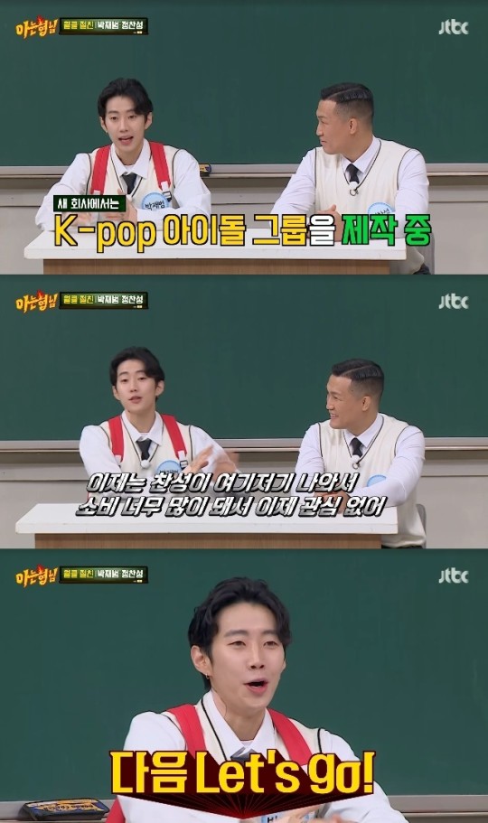 En cuanto a no aceptar a Chan Sung Jeong,”No es porque (Chan Sung Jung) sea viejo o esté fuera de forma. La nueva compañía está produciendo un grupo ídolo de K-POP. En ese momento, era una shock refrescante porque Chan Sung era misterioso… Ahora, hay demasiados de ellos aquí y allá y consumimos mucho, así que no estoy interesado”, dijo pulcramente como un hombre de negocios, provocando risas.